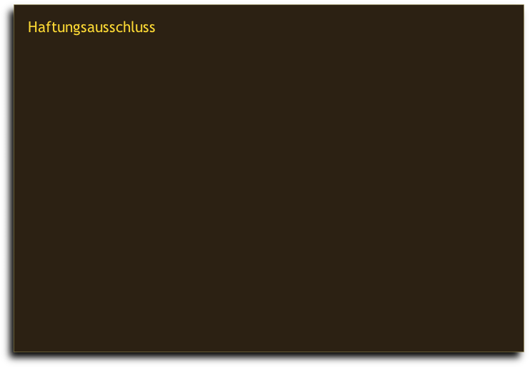 Der Autor übernimmt keinerlei Gewähr für die Aktualität, Richtigkeit und Vollständigkeit der bereitgestellten Informationen auf unserer Website. Haftungsansprüche gegen den Autor, welche sich auf Schäden materieller oder ideeller Art beziehen, die durch die Nutzung oder Nichtnutzung der dargebotenen Informationen bzw. durch die Nutzung fehlerhafter und unvollständiger Informationen verursacht wurden, sind grundsätzlich ausgeschlossen, sofern seitens des Autors kein nachweislich vorsätzliches oder grob fahrlässiges Verschulden vorliegt.